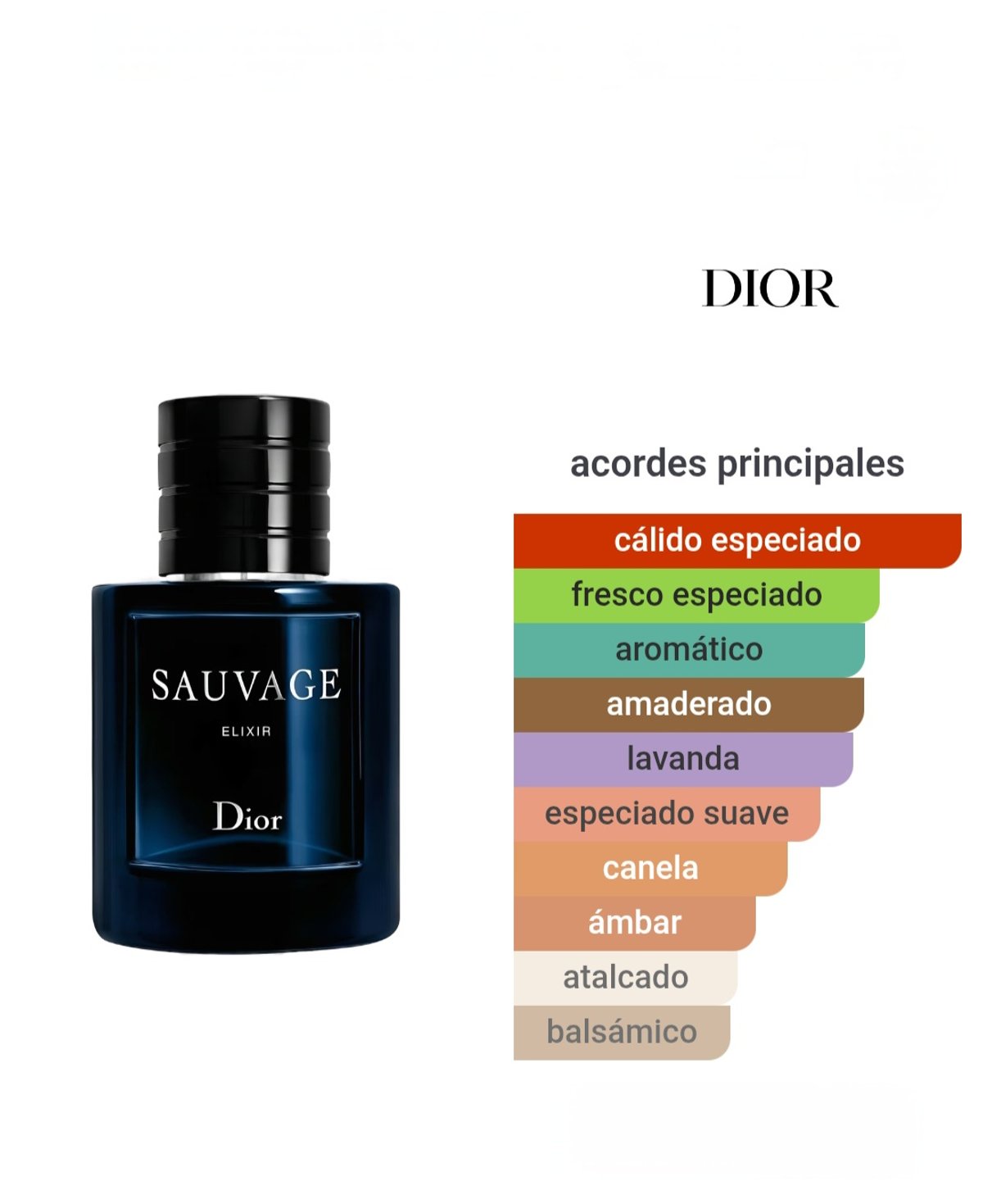 Sauvage Elixir de Dior es una fragancia de la familia olfativa Aromática para Hombres. Sauvage Elixir se lanzó en 2021. La Nariz detrás de esta fragrancia es François Demachy. Las Notas de Salida son nuez moscada, canela, cardamomo y toronja (pomelo); la Nota de Corazón es lavanda; las Notas de Fondo son regaliz, sándalo, ámbar, pachulí y vetiver de Haití.
